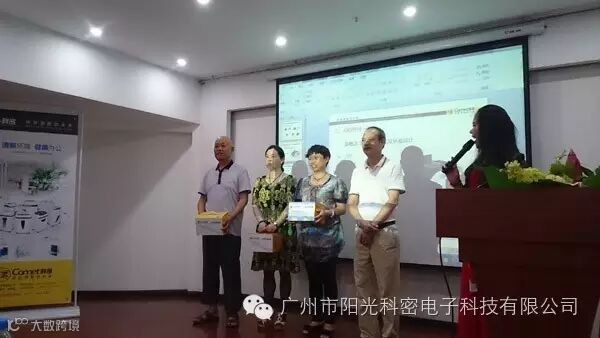 最终,拍买环节、抽奖等环节把会议推到最高潮,科密公司工厂总经理邱国富先生、阳光科密运营总监刘光华先生、科密生物识别事业部总经理周锦诚先生及喜鑫商贸总经理杨正阳先生为获奖者一一颁奖!