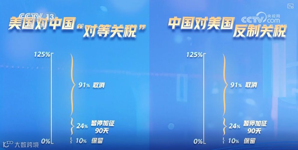 声明里提到的几个文件主要是围绕着美国加征的所谓“对等关税”。4月份以来,美国对华加征的所谓“对等关税”一共是125%,中国也进行了坚决正当反制。现在,按照双方达成的共识,美方取消其中共计91%的加征关税,暂停实施24%的“对等关税”90天,那么现在的对华“对等关税”就是10%。中方也相应取消和暂停了部分反制关税。具体的,大家可以把这张图截屏保存细看。此外,中方还相应暂停或取消对美国的非关税反制措施。不过,这次谈到的只是中美双方实施的关税中的一部分,像美方以“芬太尼”为由对华加征的关税以及中方实施的反制关税,在声明中都没有提及。