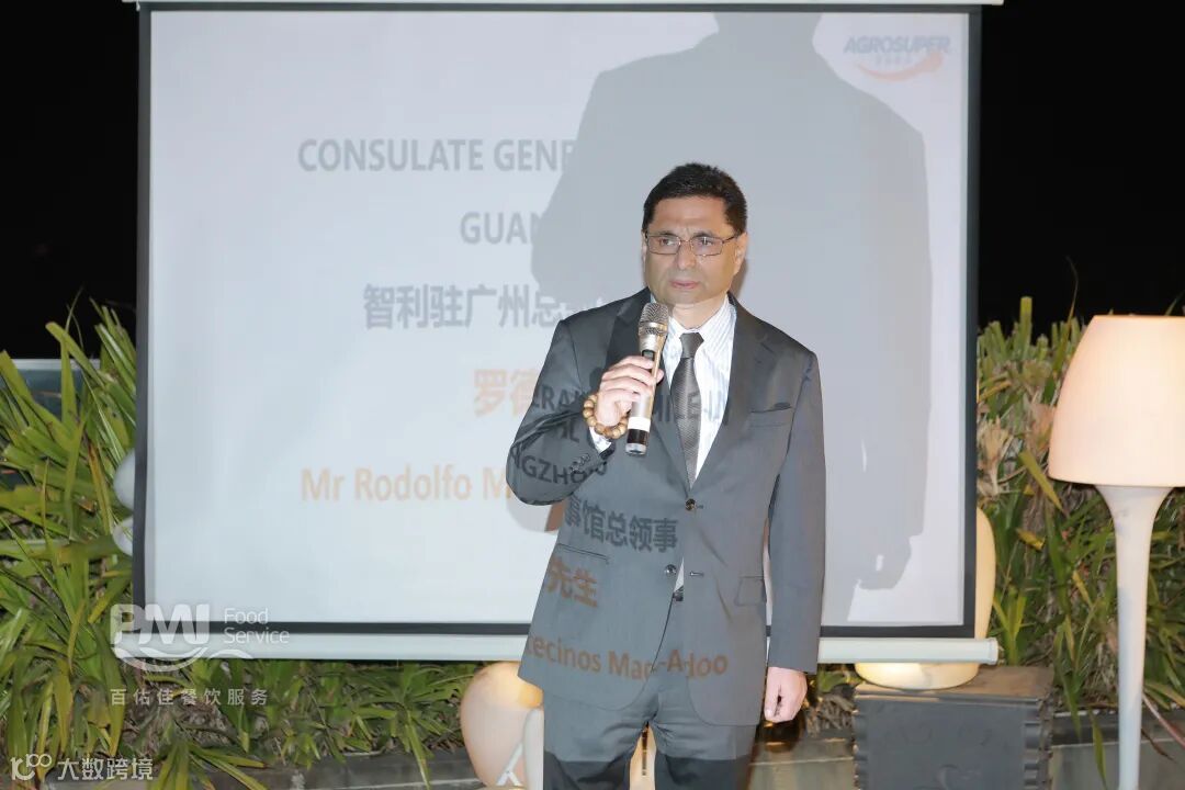 智利驻广州总领事馆总领事 Rodolfo Montecinos 罗德夫先生受邀出席并发表了讲话。他借此中智建交50周年之机,感谢了中国顾客对智利产品的支持,表达了对中智友好关系长远发展的信心。