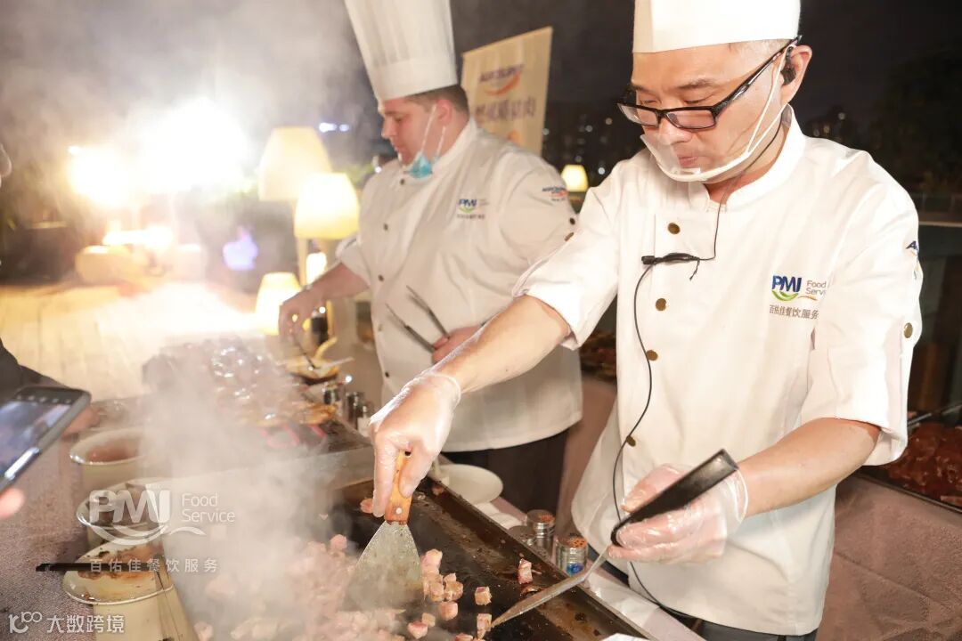 在现场,百佑佳的大厨们使用爱阁食品的梅花肉、五花肉以及鸡翅中制作了精美的烧烤餐食供来宾享用。