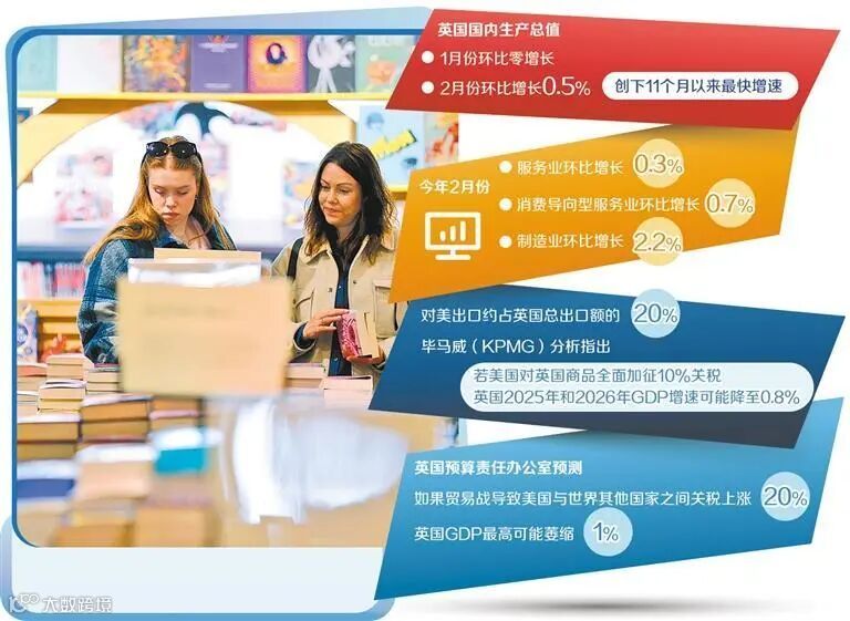 英国国家统计局近日公布的数据显示,2月份英国国内生产总值(GDP)环比增长0.5%,创下11个月以来最快增速,超出经济学家普遍预期的0.1%。此前,1月份GDP环比零增长,主要原因是生产部门疲软,制造业产出环比下降0.9%。分析认为,2月份数据的强劲表现为英国财政提供了短暂的喘息机会。但经济学家警告,英国经济增长回弹具有短期性,经济复苏仍可能面临美国关税政策的显著冲击。