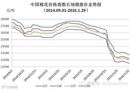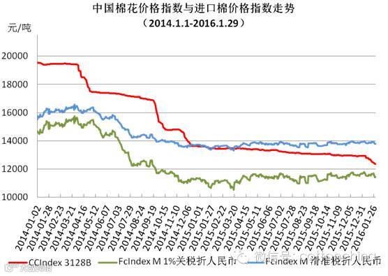 1、1月份中国棉花价格指数大幅下滑
