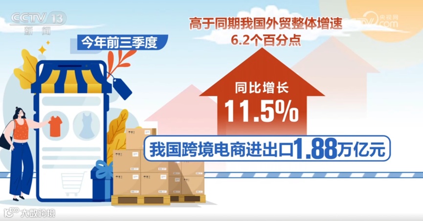 据海关总署最新发布的数据显示,今年前三季度,我国跨境电商进出口1.88万亿元,同比增长11.5%,高于同期我国外贸整体增速6.2个百分点,正成为我国外贸增长的新动能。