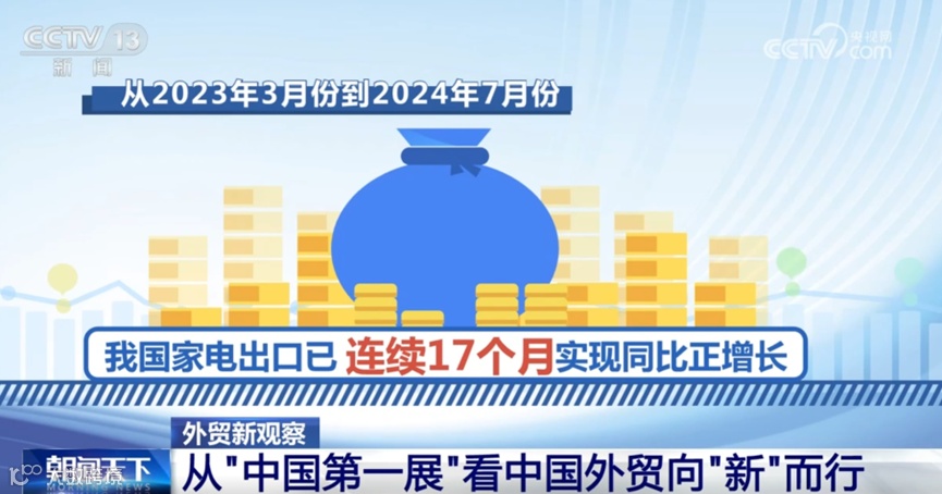 数据显示,从2023年3月份到2024年7月份,我国家电出口已连续17个月实现同比正增长。作为以服装、家具、家电为代表的“老三样”之一,中国家电在本届广交会上也表现得非常突出。