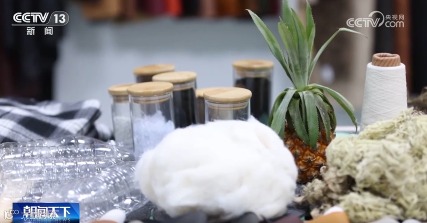 这家参展商,今年生产的可再生环保材料箱包占比已经达到80%。废弃的矿泉水瓶只是他们使用的众多环保材料中的一种。