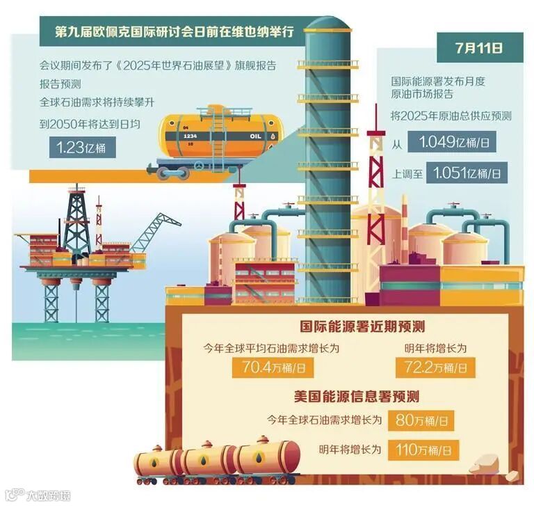 日前,第九届石油输出国组织(欧佩克)国际研讨会在奥地利首都维也纳举行,会议期间发布了《2025年世界石油展望》旗舰报告,为全球石油市场勾勒出一幅既乐观却又充满挑战的图景。与欧佩克的乐观情绪相比,国际能源署和美国能源信息署的石油需求预测更加保守。同样是重量级的能源机构,各方对未来石油供需平衡、油价走势和能源转型趋势等有不同的判断。在全球经济放缓、地缘政治局势紧张和能源转型加速的背景下,全球石油市场何去何从众说纷纭。