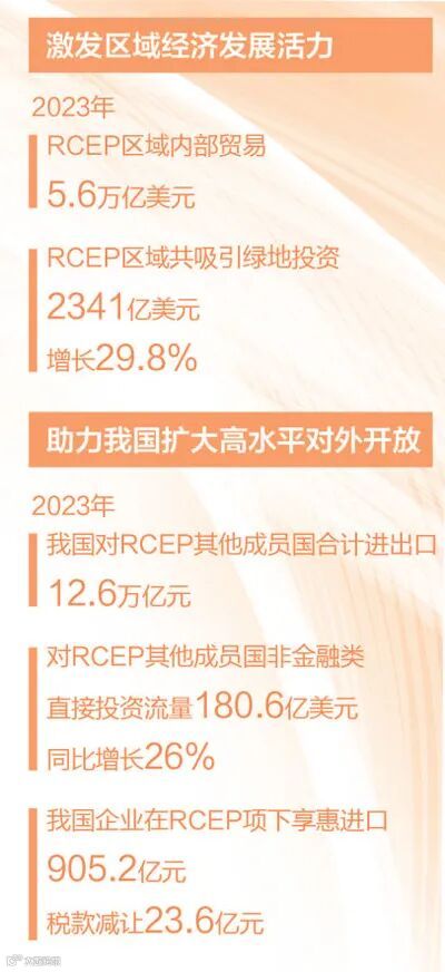 至今年6月,RCEP全面生效已满一年,极大促进了区域内原材料、产品、技术、人才、资本、信息和数据等生产要素的自由流动,推动逐步形成更加繁荣的区域一体化大市场,促进成员国更大范围、更高水平、更深层次的开放合作。