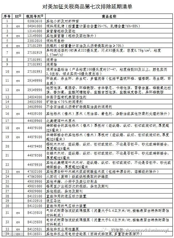 对美加征关税商品第七次排除延期清单