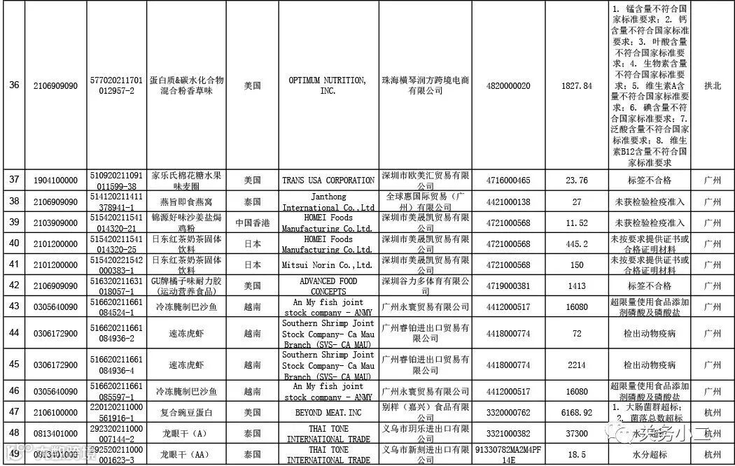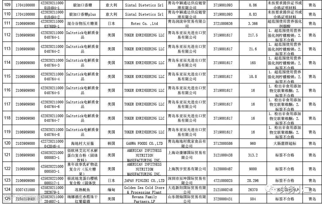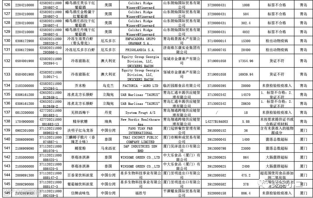 2021年1月未准入境的化妆品有3批次,未准入境食品不合格原因为:标签不合格、砷超标。其中来自法国的1批次面膜粉砷超标;来自美国的1批次保湿凝霜标签不合格;来自澳大利亚的1批次保湿霜标签不合格。