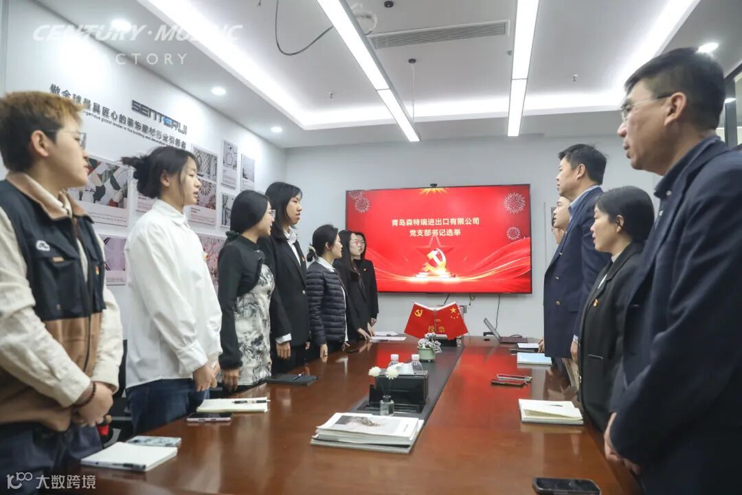 2026年2月3日上午,在庄严的国歌声中,青岛森特瑞进出口有限公司党支部成立大会隆重举行。会议严格遵循党章规定程序进行,现场郑重宣读了街道党工委《关于同意成立青岛森特瑞进出口有限公司党支部的批复》文件。