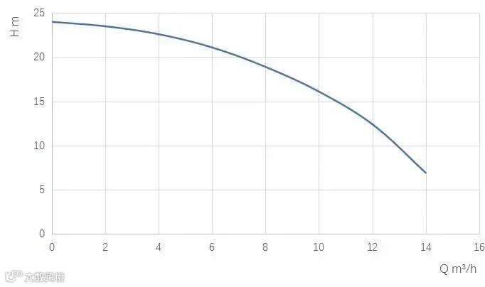绿色曲线更加平缓,交点是5.4m³/h,18m,红色曲线更加陡峭,交点是6.5m³/h,26m,由此可见,功率提升后,流量是否能得到提升需要结合水泵性能与系统阻力一起评估,简单的靠功率提高来选取水泵,未必能提供更大的流量。