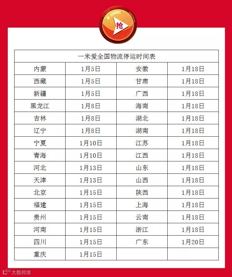 最后献上一份一米爱的物流停运表
