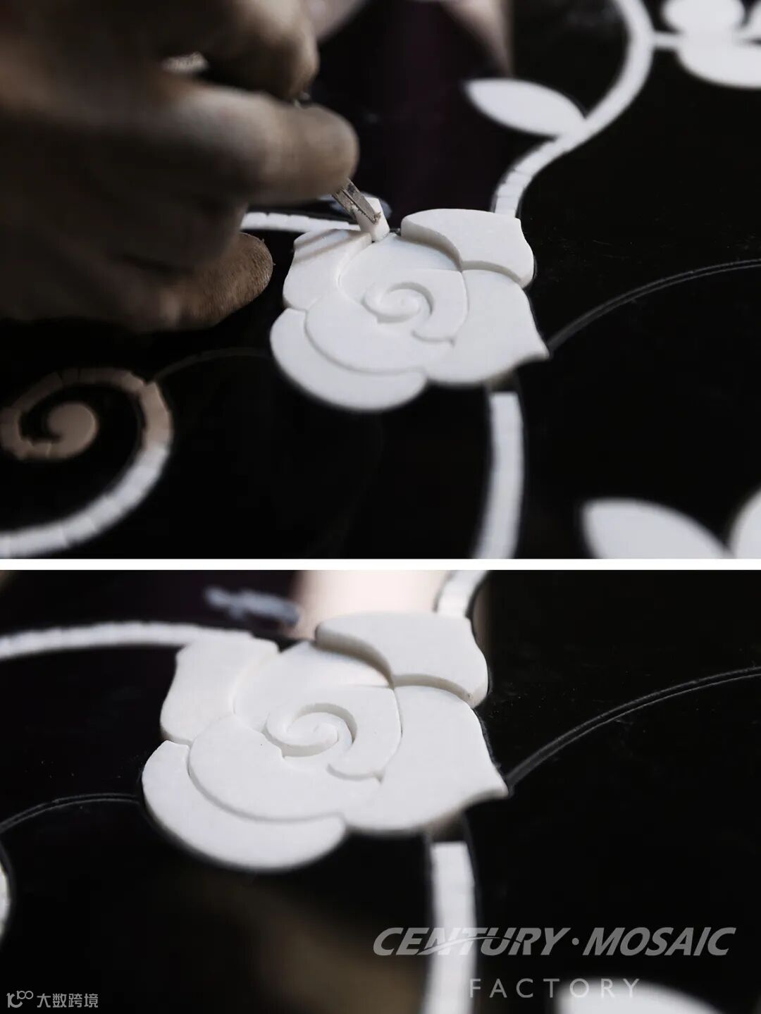 一朵花的制作过程,总是要经历复杂的工序和对石材严苛的考验。