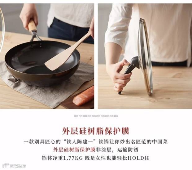 铁锅十分耐造,不需要准备专门的软质锅铲,也不怕磕碰;传热超级快,适合爆炒,而且锅体不重,女生也能玩转颠勺。