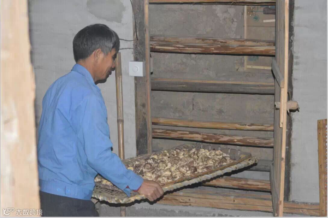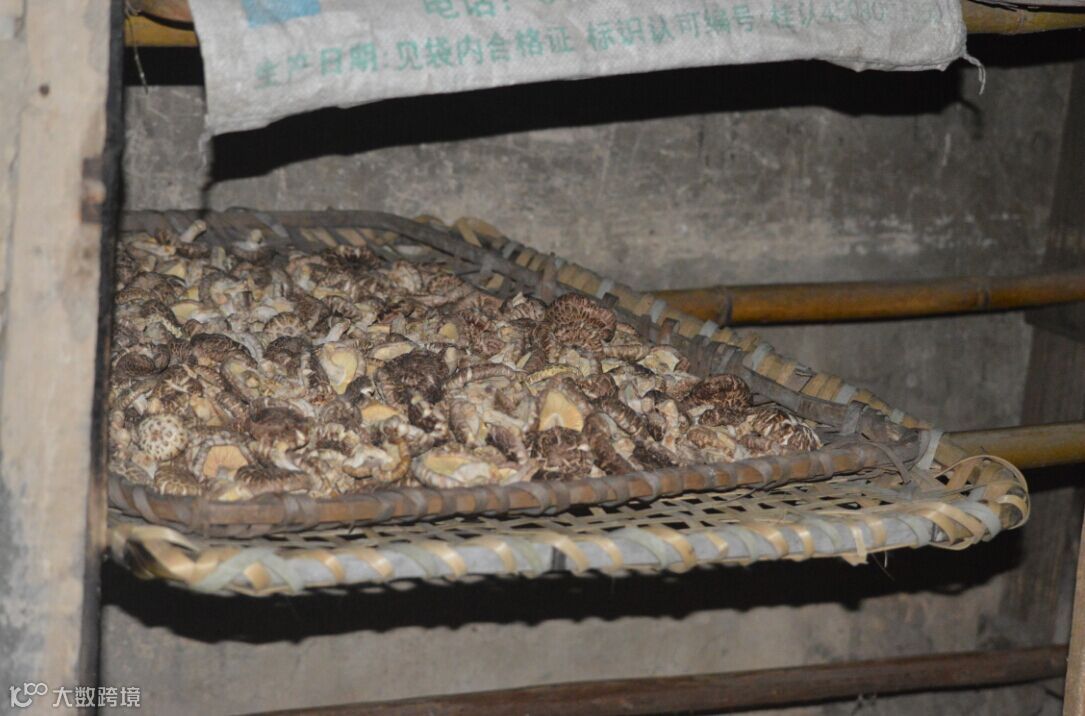 第四步:是土坑烘干,新鲜香菇用农村自做火坑烘干,先低后高,开始时不超过40℃,每隔3~4小时升高5℃,最后不超过65℃;然后再"复烤"3~4小时,用足三天两夜时间,烘出的香菇色泽好,营养好;香味浓。