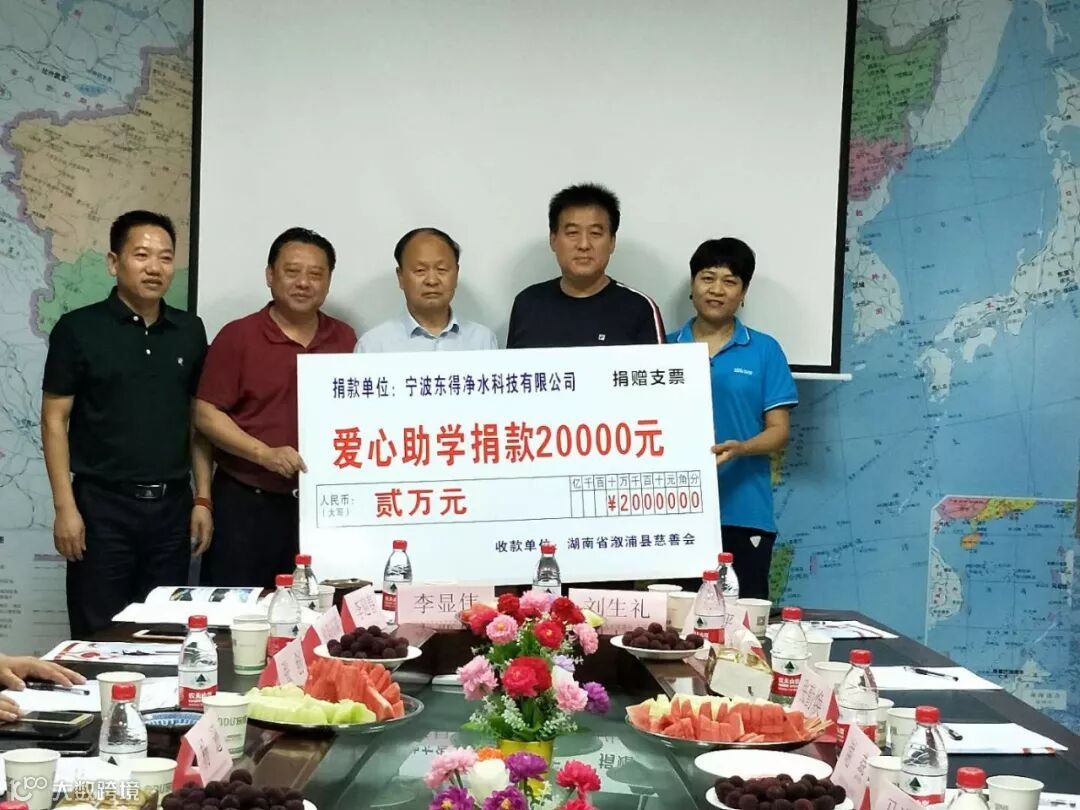 据悉,此次湖南溆浦县领导、宁波市湖南商会、团工委及爱心人士30余人来访东得净水,主要是为了做一个“爱心慈善活动”——“引老乡、帮家乡,慈善助脱贫、人人来参与”的慈善活动,以达到快速建成宁波市湖南商会第一座希望小学“夜珠溪(宁波市湖南商会)希望小学”之目的,通过此次活动早日实现希望小学落成,体现湖南人在宁波的团队爱心、正能量和回报家乡的心愿。