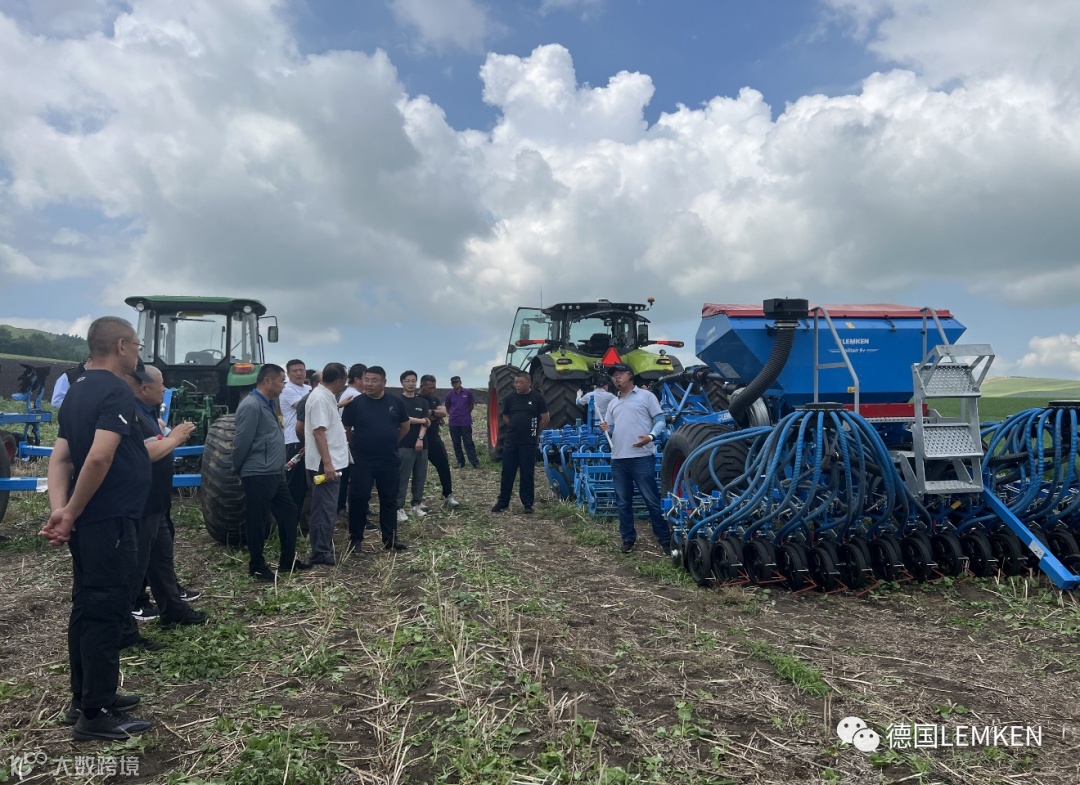 7月5日 在德国LEMKEN公司授权经销商呼伦贝尔市经纬万和农业机械销售有限公司的大力组织下,德国LEMKEN公司携其明星产品高速灭茬缺口圆盘耙Rubin,电控气吹精量播种机Solitair,全悬挂液压翻转犁Juwel如约而至,以模块化+复式精量播种为主题的中国首秀在三河农牧场有限公司盛大举办,并配套德国CLASS公司最新款AXION 2804拖拉机。额尔古纳市农牧局,呼伦贝尔农垦集团有限公司农机科技部、专业公司、岭北各农牧场及额尔古纳市周边农场领导亲临现场并给与指导。
