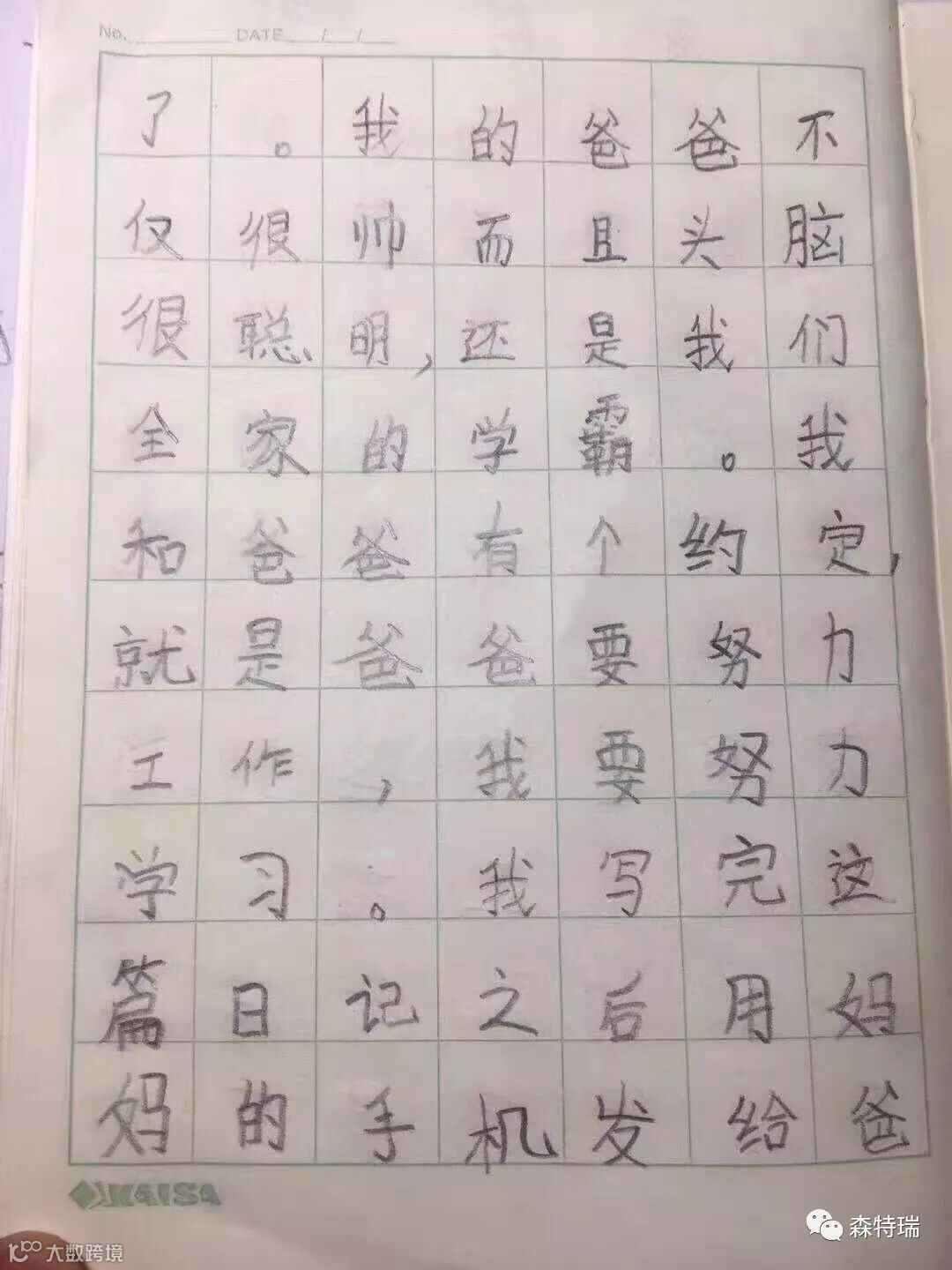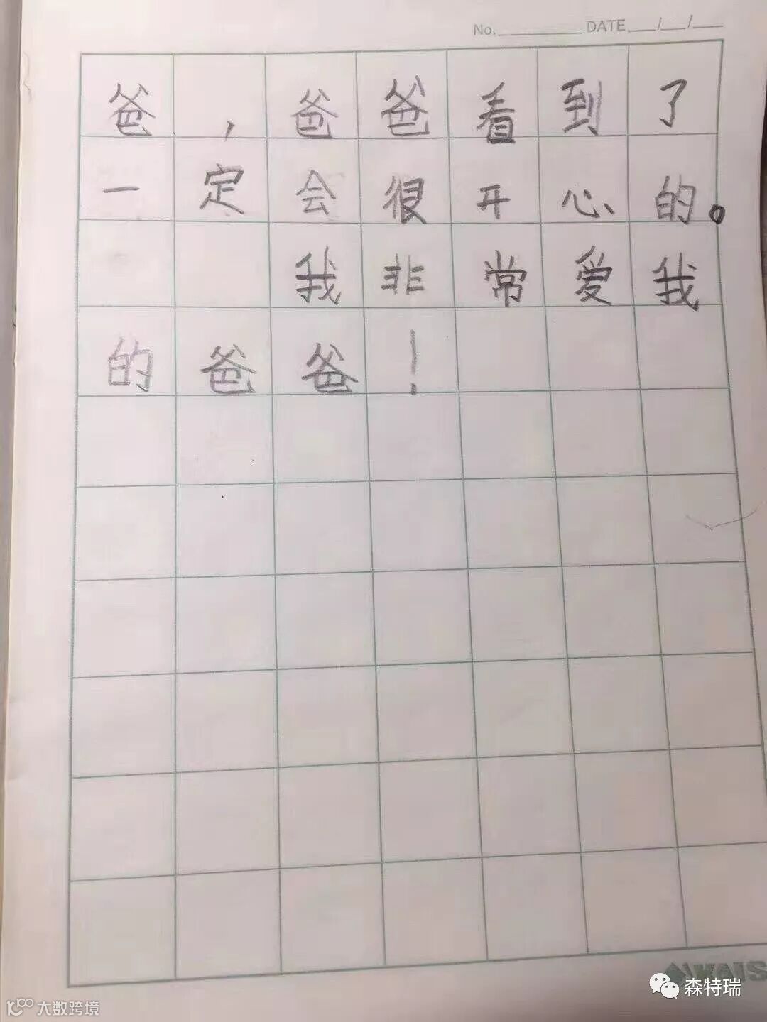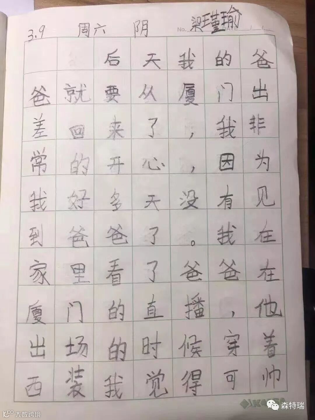 这是梁瑾瑜小朋友写给爸爸日记,其实相隔再远,再久没见,对于爸爸的爱,只会有增无减。