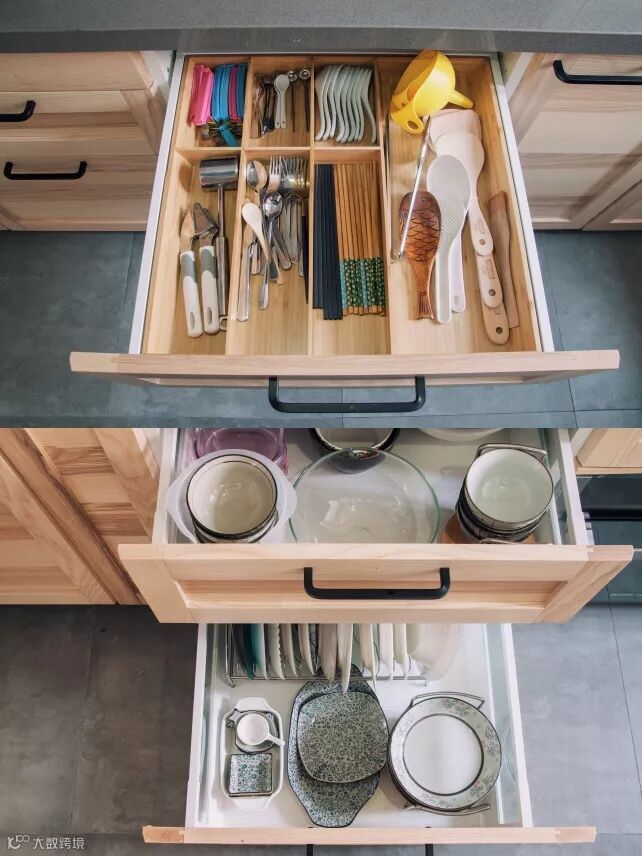 筷子刀叉零碎小物收纳于烤箱上层浅抽