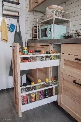 调味罐和瓶瓶罐罐也全部藏进了拉篮