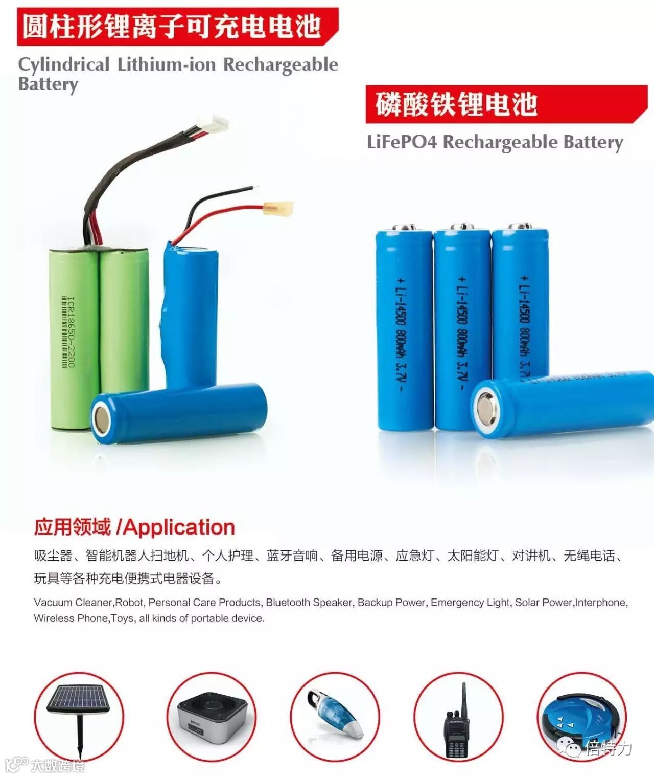 (数码相机电池、对讲机电池、遥控玩具电池、电动工具电池、应急灯矿灯电池、无绳电话电池、无线耳机电池、剃须刀电池、吸尘器/扫地机电池、游戏机电池、电动牙刷电池)