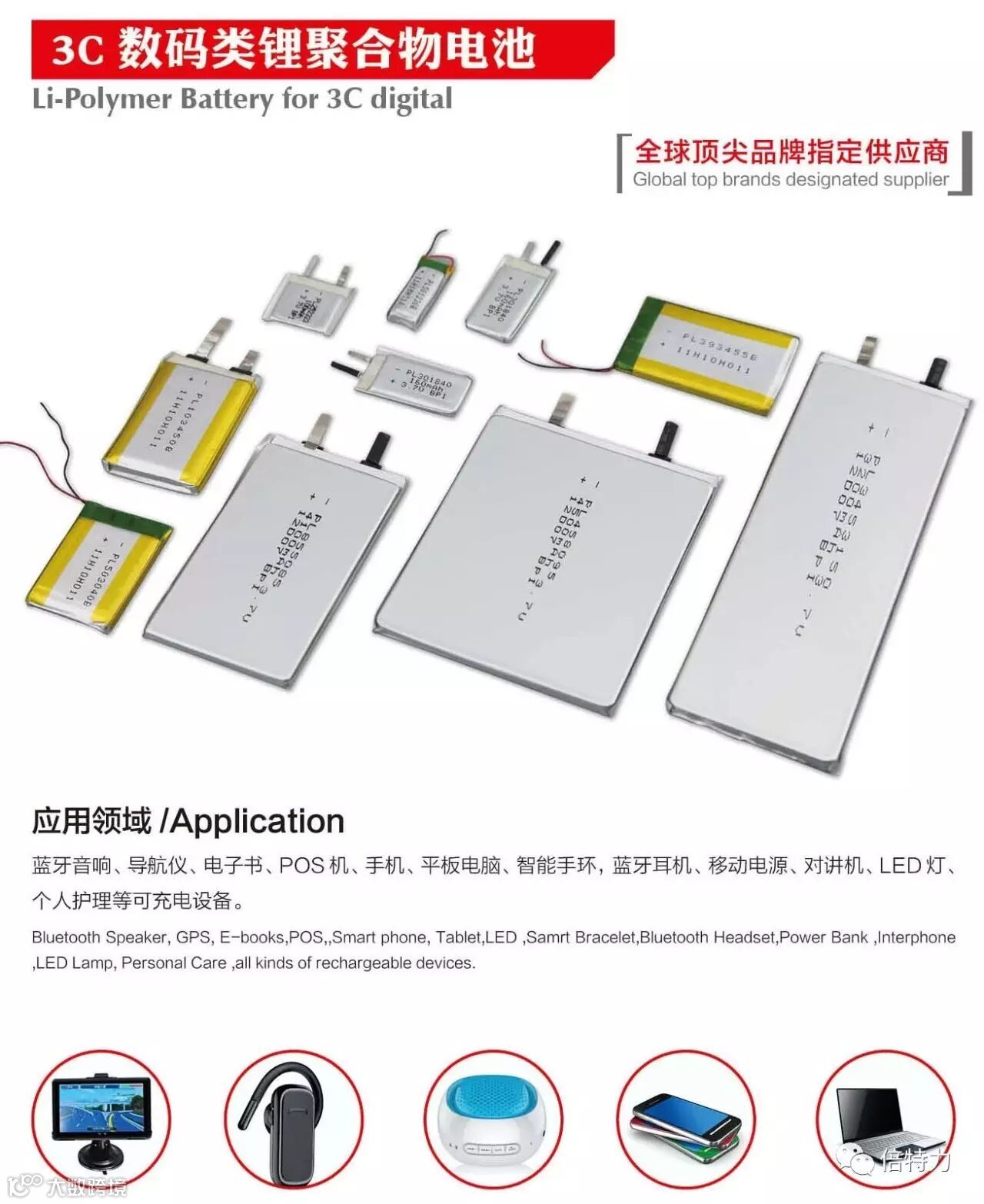 (蓝牙音响类、对讲机电池、通讯电池 、手持电话电池、数码相机电池)