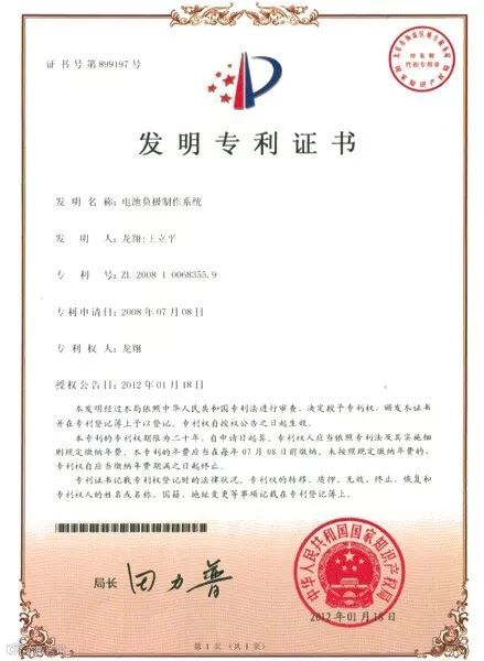 (专利类型:发明 名称:电池负极制作系统 专利号:ZL200810068355.9)