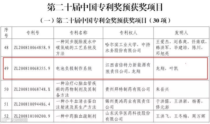 热烈祝贺江西倍特力新能源荣获“中国专利优秀奖”!
