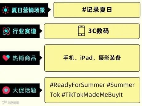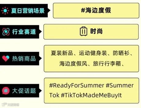 - 使用话题标签#ReadyForSummer、#SummerTok、#TikTokMadeMeBuyIt