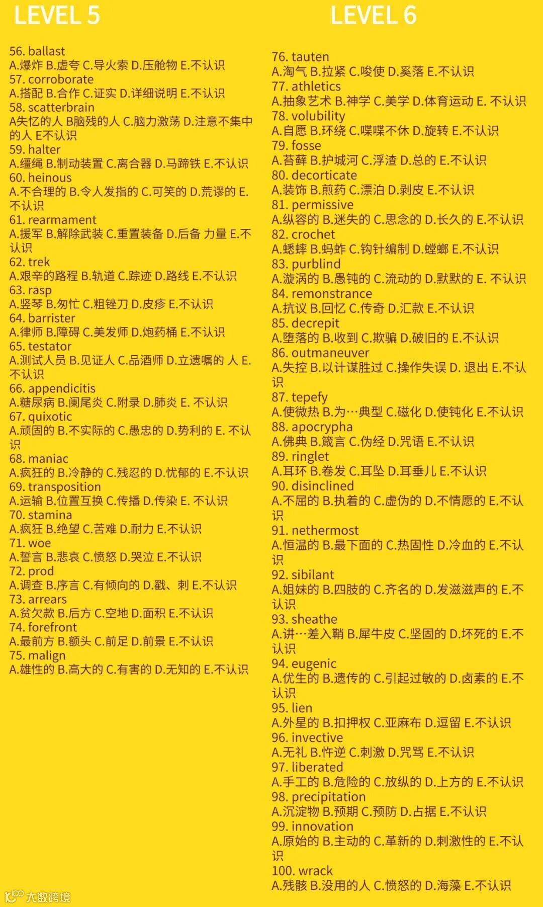该测试包含100道题,分为6个级别,耗时约3-8分钟。请学生独立完成,避免猜测,以确保结果真实反映实际词汇掌握情况。