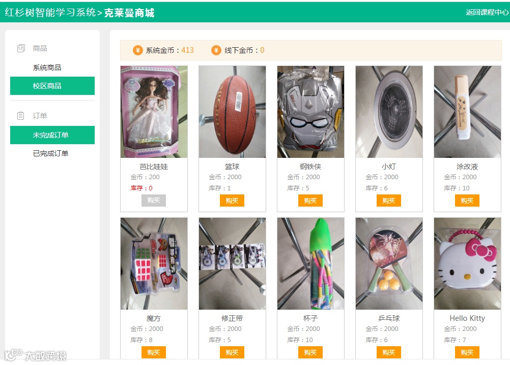 克莱曼商城提供丰富奖品,学生可用学习积分兑换,形成正向激励闭环。