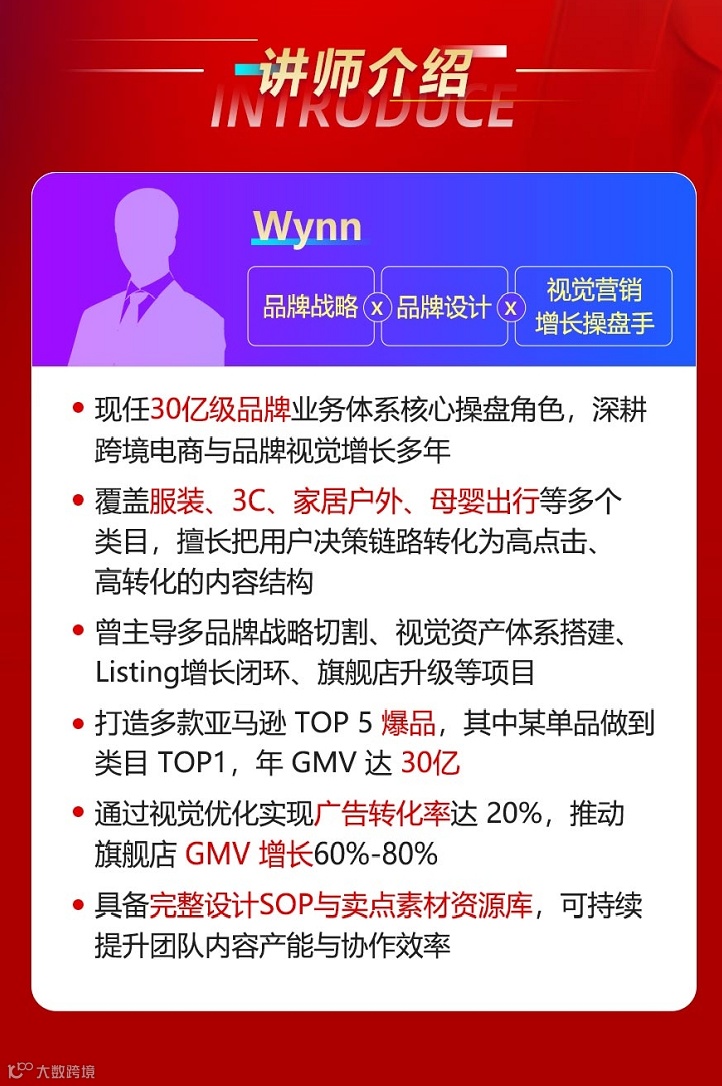 不懂营销的美工不是好运营,缺乏销售思维的设计无法创造高转化。与Wynn一起查漏补缺,让运营更懂设计,让设计更懂运营,共同打造更具转化力的电商视觉体系。