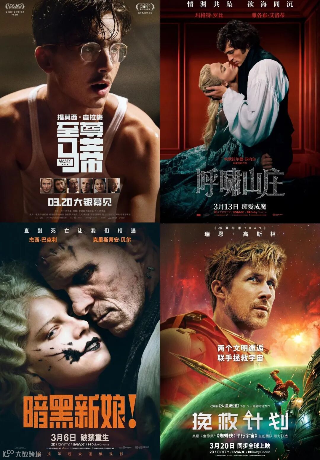 3月被影迷视为引进片的黄金档期。本月上映的引进片包括《至尊马蒂》(提莫西·查拉梅主演)、《暗黑新娘!》(克里斯蒂安·贝尔、杰西·巴克利)、《呼啸山庄》(玛格特·罗比、雅各布·艾洛蒂)和《挽救计划》(瑞恩·高斯林),阵容强劲且备受期待。