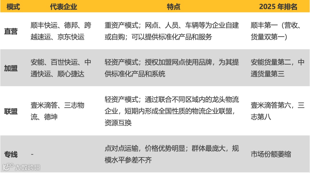 2026年现实印证该趋势:专线大幅萎缩;联盟加速整合(如壹米滴答合并、德坤入股顺心捷达);行业基本形成“直营 vs 加盟”二元格局。