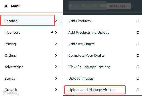 功能路径:卖家中心 → 顶部导航栏「Catalog」→ 「Upload and Manage Videos」。