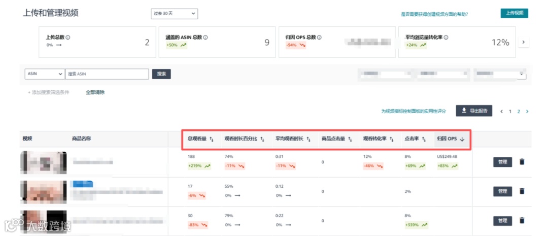- Attributed OPS(归因销售额):用户观看视频后14天内产生的关联ASIN销售收入,是衡量视频带货力的核心指标。