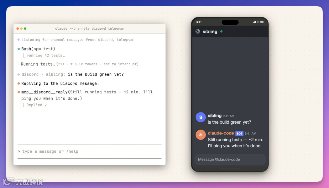 Claude Code新增Channels功能,支持Telegram和Discord远程控制
