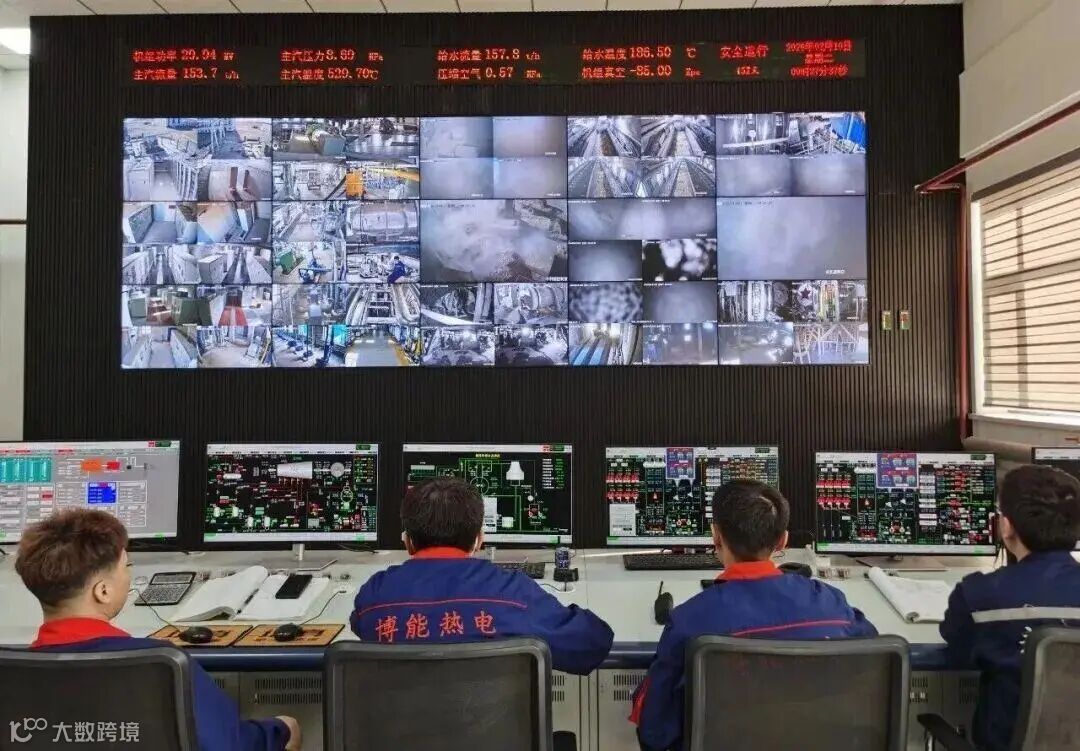 作为机组“智慧大脑”的工作室内,巨型LED监控屏实时呈现厂区各工段生产场景及锅炉运行等关键参数,实现全域覆盖与动态监测。