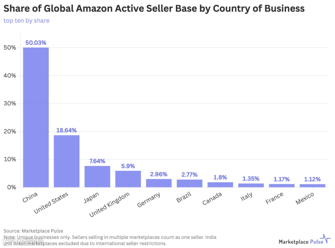 美国本土卖家在头部主导地位 图源:Marketplace Pulse