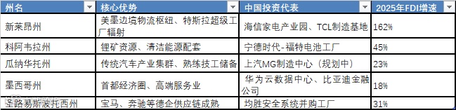 新兴趋势:中国企业开始向南下加利福尼亚州(海运优势)和普埃布拉州(大众供应链)渗透,突破传统的北部边境依赖。