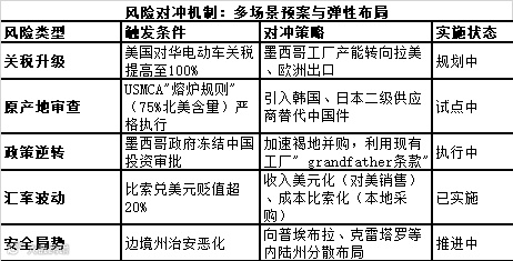 其他车企: 上汽名爵(MG)计划投资10.5亿美元在墨西哥建立制造中心和研发中心,年产能目标10万辆;奇瑞(Chirey)也表达了在2026年前在墨西哥建立组装厂的意向。北汽福田等商用车企业则已深耕多年,形成了稳定的本地化生产体系。