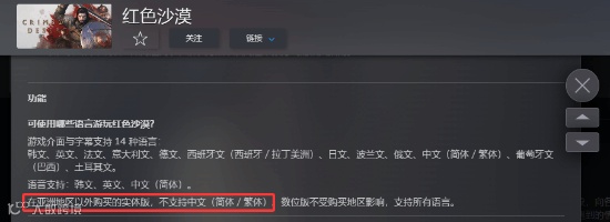 在官方此前的公告中明确提到,在亚洲地区以外购买的实体版不支持中文(简体/繁体),数字版则不受影响,支持所有语言。