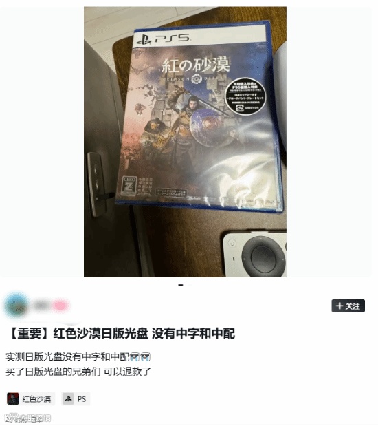 不过玩家们需要注意了,除非自身日语实力过硬,否则在购买《红色沙漠》时千万不要购买PS5日版光盘!