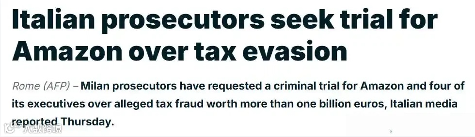 欧盟税务监管再出重拳,亚马逊欧洲核心运营主体 Amazon EU Sarl 及 4 名核心高管正面临意大利司法机构的刑事追责。