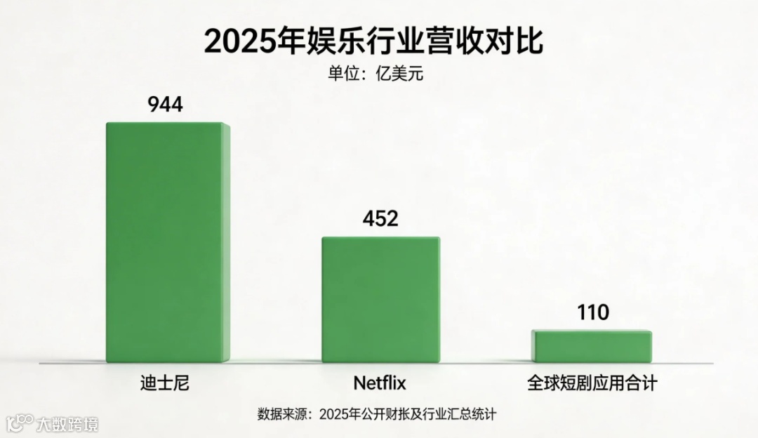 灵敏的商业嗅觉和开放的策略,推动巨头们在营收规模上形成明显优势:2025年,Netflix营收达452亿美元,迪士尼则实现超944亿美元收入。相比之下,全球短剧应用合计约110亿美元的收入规模,即便增速迅猛,也仍显稚嫩。