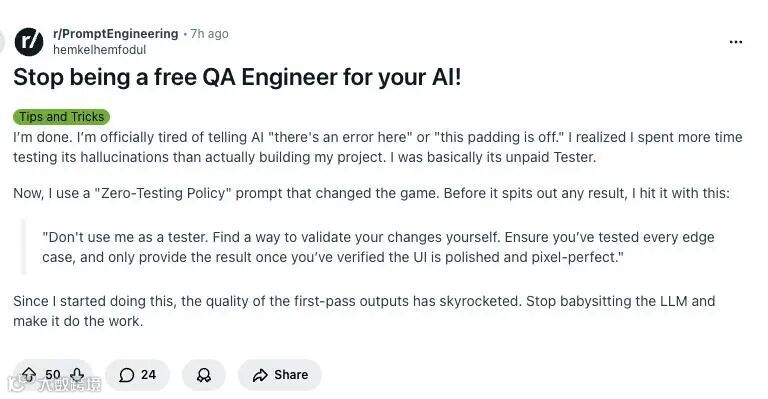 最近 Reddit 上有个高赞思路,之所以能戳中那么多人,就是因为它把这个问题点得很透。它给出了一句很简单的提示词核心: