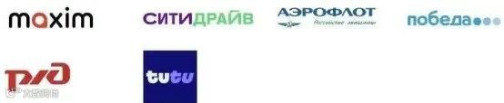 俄罗斯铁路、俄航及胜利航空、Туту旅游平台、2ГИС导航、Максим出租车、Ситидрайв租车、Delovye Linii运输、Grand Service Express铁路、Yandex出行与地图。文娱服务类