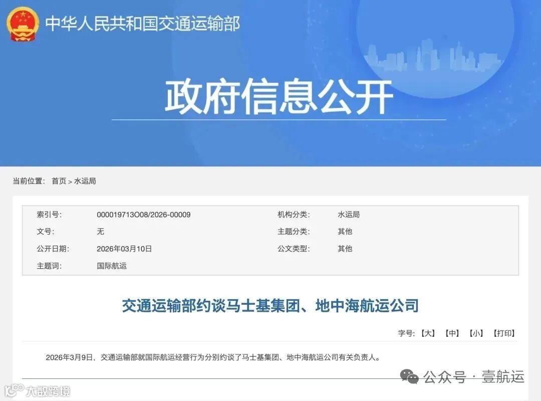3月9日,中国交通运输部已就国际航运经营行为约谈马士基集团和地中海航运公司。此次发改委约谈可能与2月23日巴拿马当局接管和记黄埔旗下巴尔博亚港和克里斯托瓦尔港事件相关。