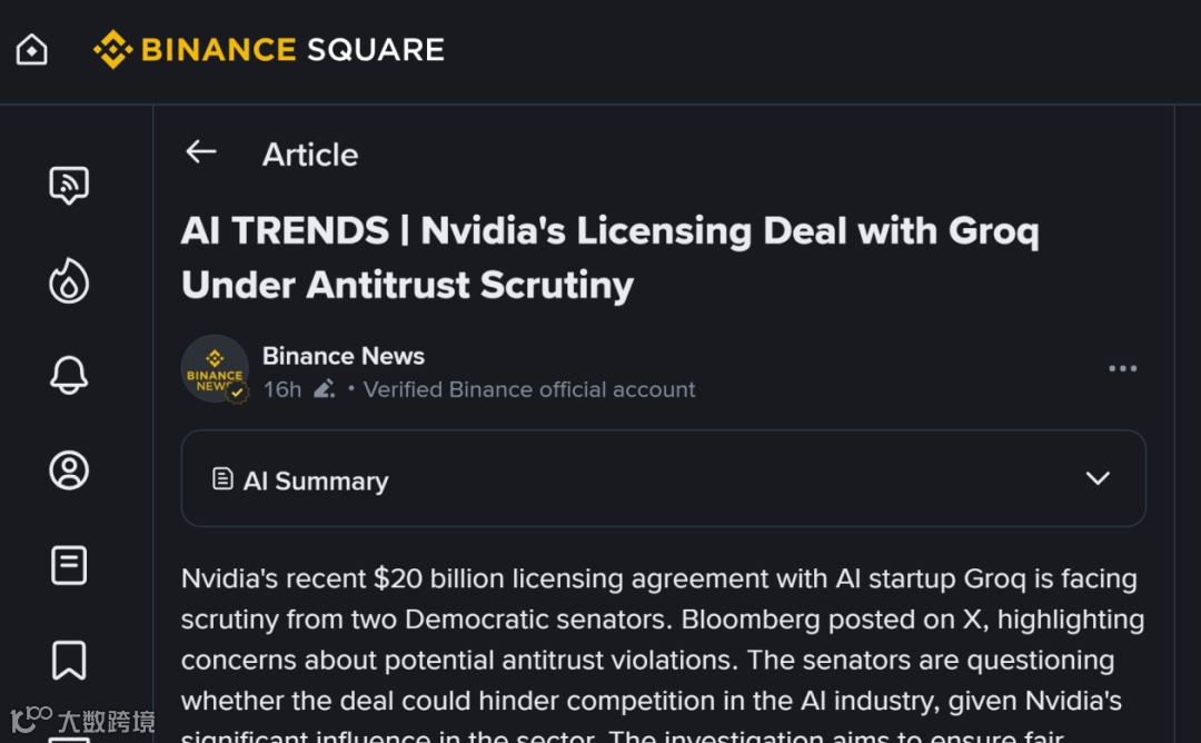 英伟达200亿美元Groq授权协议引美参议员反垄断调查