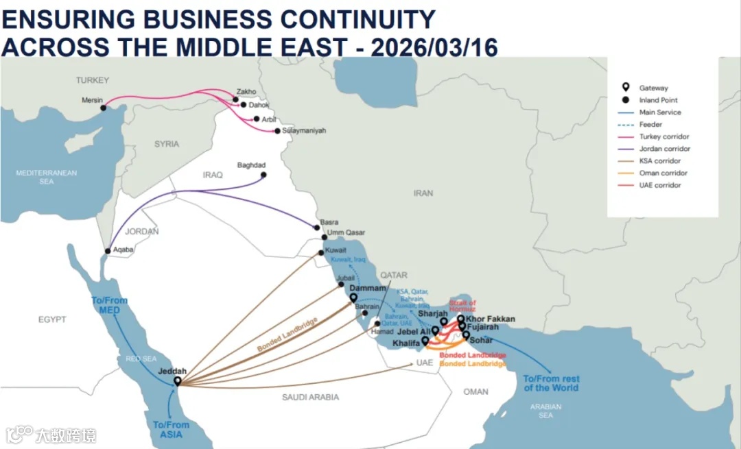 依托苏哈尔港等节点,达飞开辟经阿曼至阿联酋的公路绕行路径。货物通过阿曼港口中转后,可结合公路与支线船服务深入海湾上游地区,为跨境物流提供可靠备选方案。
